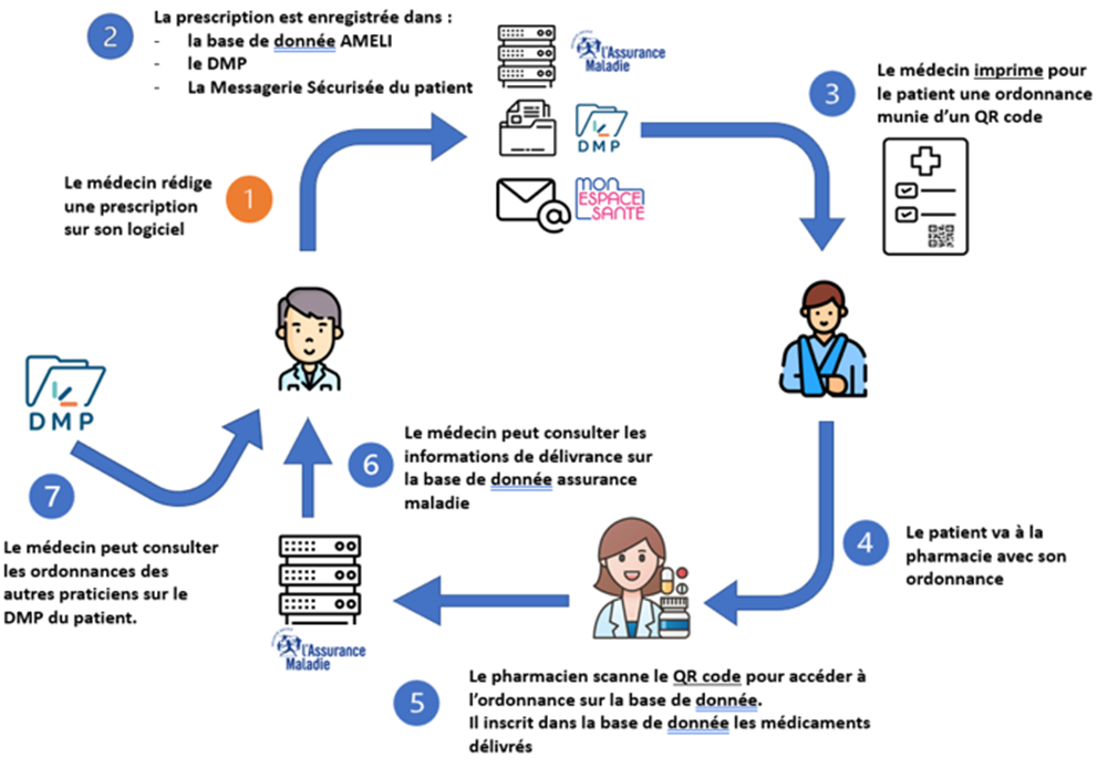 Le circuit de la prescription médicale reste majoritairement papier, peu traçable et sujet à des erreurs ou à des falsifications. Les professionnels de santé ont besoin de solutions conformes au Ségur numérique pour automatiser, sécuriser et suivre les ordonnances. Nous avons intégré un module de e-prescription conforme aux exigences du Ségur numérique, permettant la génération d’ordonnances numériques à partir d’un logiciel d’aide à la prescription (LAP). L’ordonnance est automatiquement enregistrée dans la base nationale sécurisée et accessible via un QR code imprimé sur l’exemplaire papier. Les données sont également versées dans Mon espace santé.